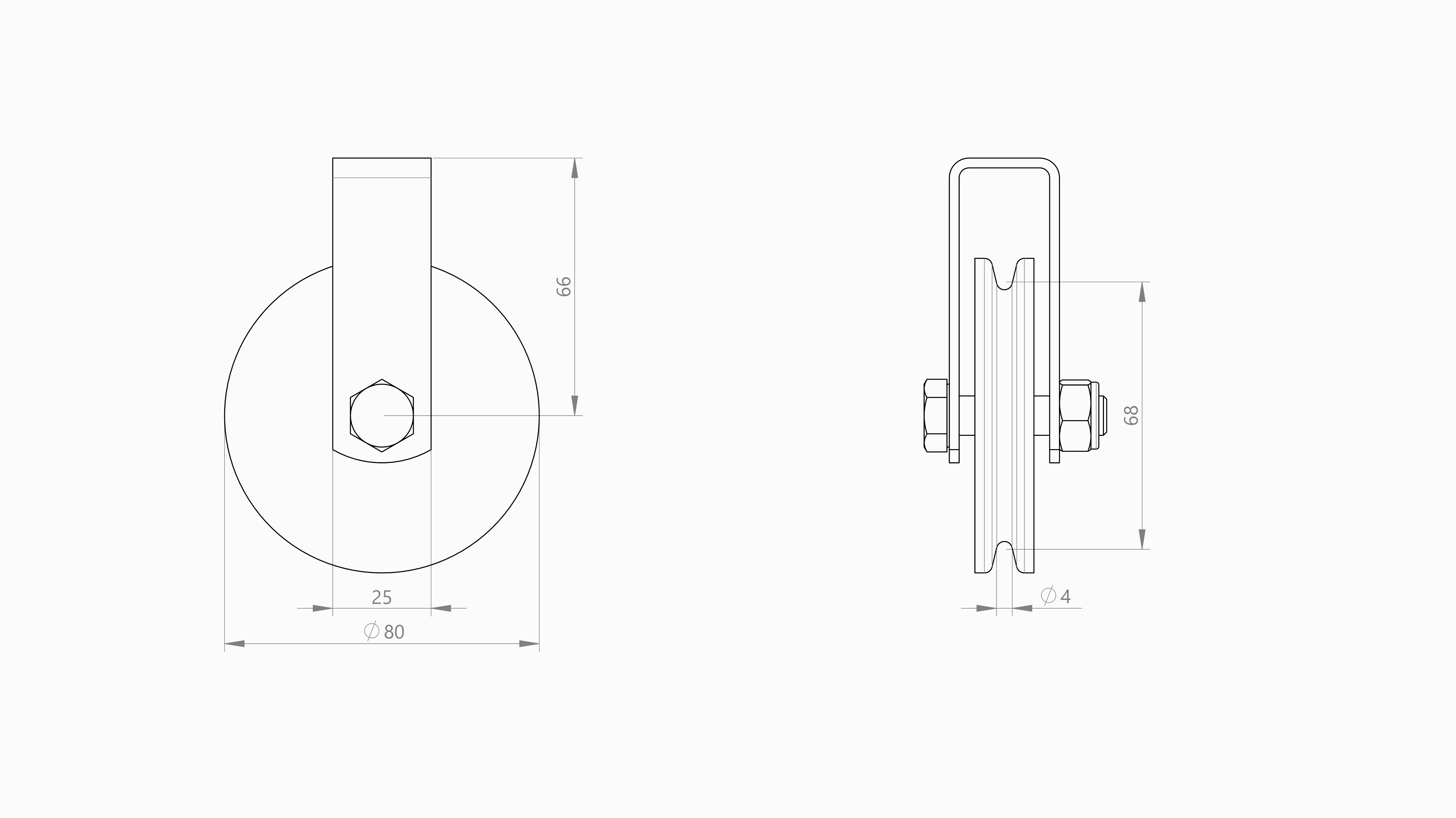 Bij gewichtscompensatie van de GXP10, GWM en GW motorreductoren met een contragewicht wordt gebruikgemaakt van een katrol met beugel wat dienst doet als omloopwiel. Het katrol met beugel wordt op een door de installateur bepaalde plaats gemonteerd. De 3mm staalkabel of het 3mm koord wordt aan de ene zijde bevestigd aan de motorreductor en loopt dan door het katrol naar de andere zijde waar het contragewicht wordt bevestigd. Overige kenmerken: