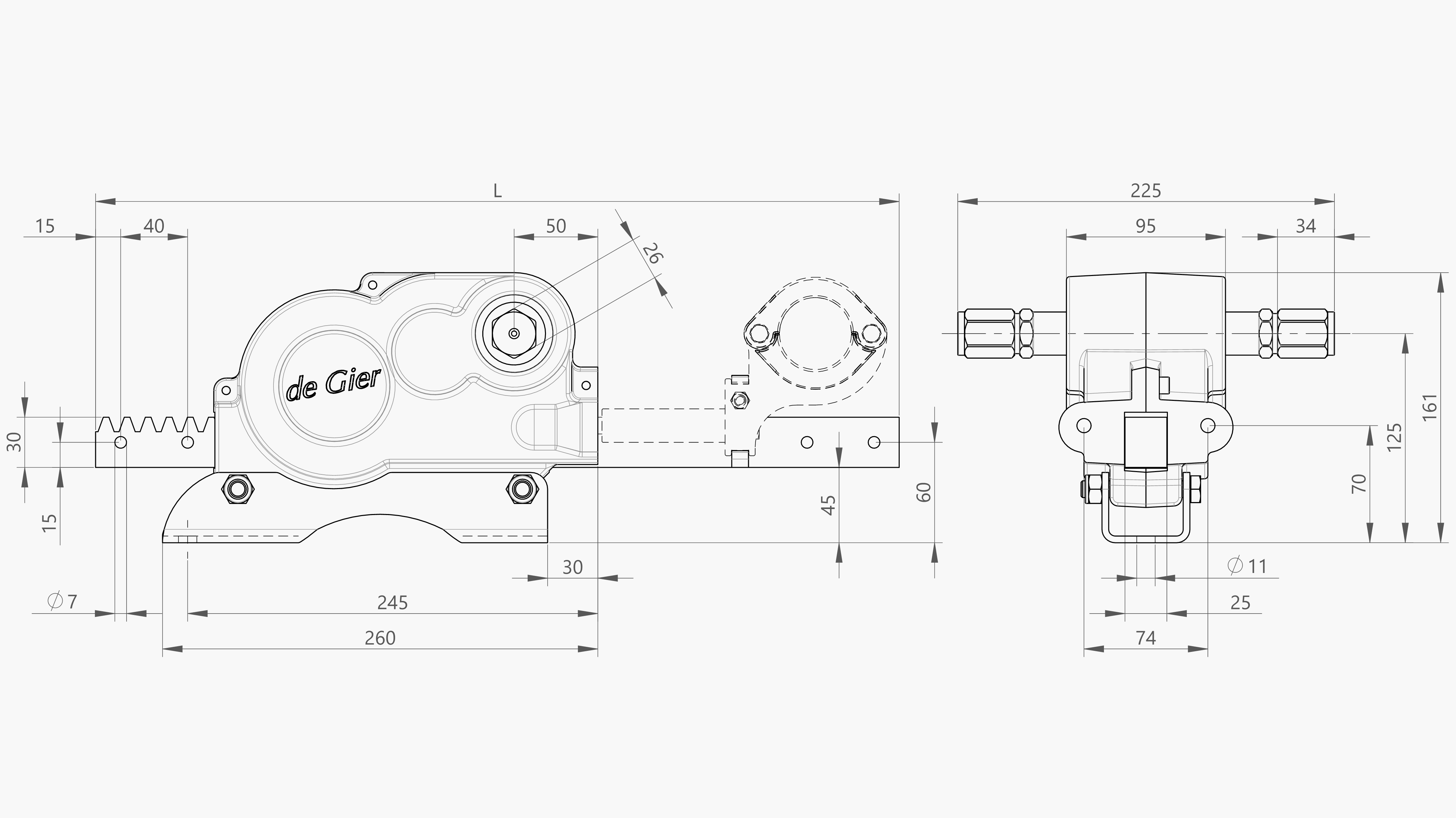 Een alternatief voor het monteren om de kolom is het monteren van tandheugels op de tralie. Hiervoor bieden wij de THG R-aandrijving, een krachtige en onderhoudsarme aandrijving voor ventilatie in VENLO kassen. Een GW-motorreductor drijft een aandrijfas aan die verbonden is met de tandheugelkast en beweegt de tandheugel. De tandheugel drijft vervolgens een trek-duwbuis aan waardoor ramen openen en sluiten. De aandrijfassen worden ondersteund door glijlagerplaten die op de tralies worden gemonteerd.