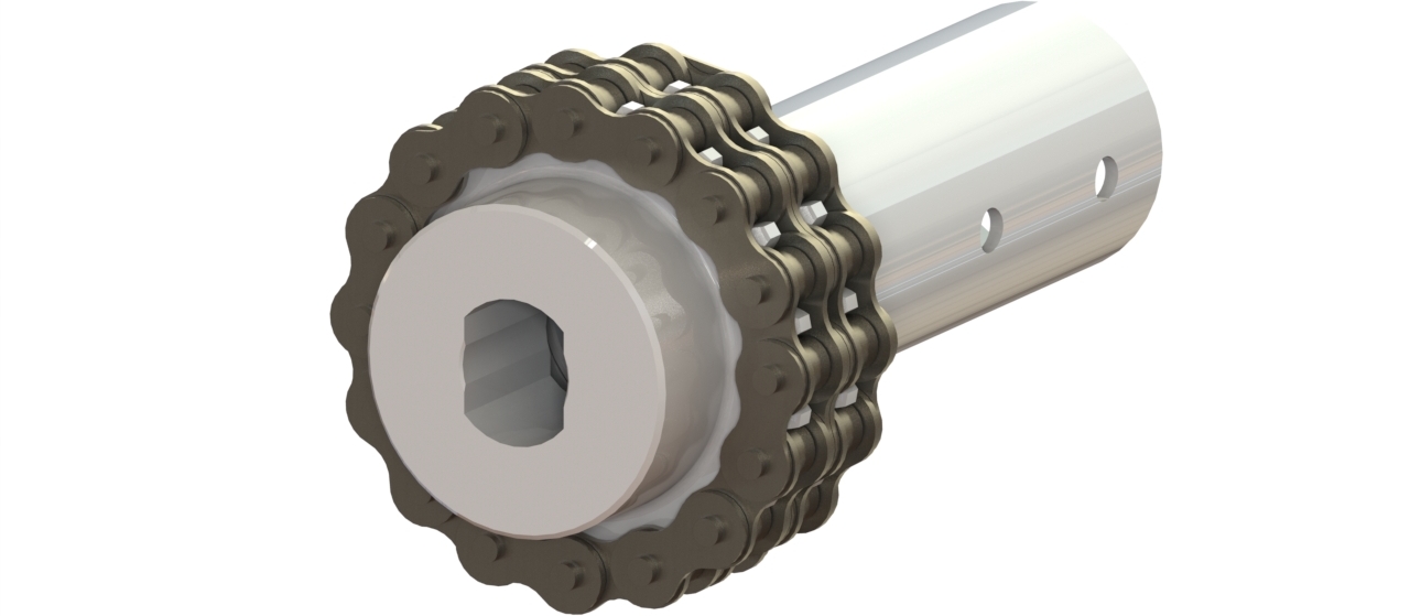 | Artikel | Omschrijving | Ketting | As | Tmax [Nm] | D [mm] | L [mm] | m [kg] |