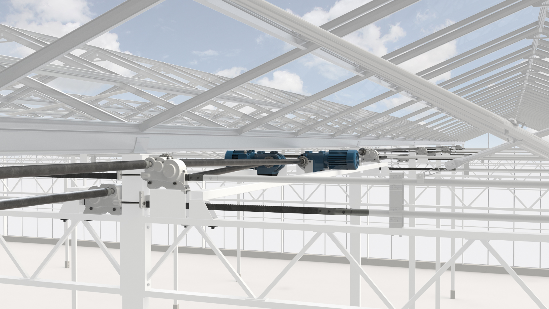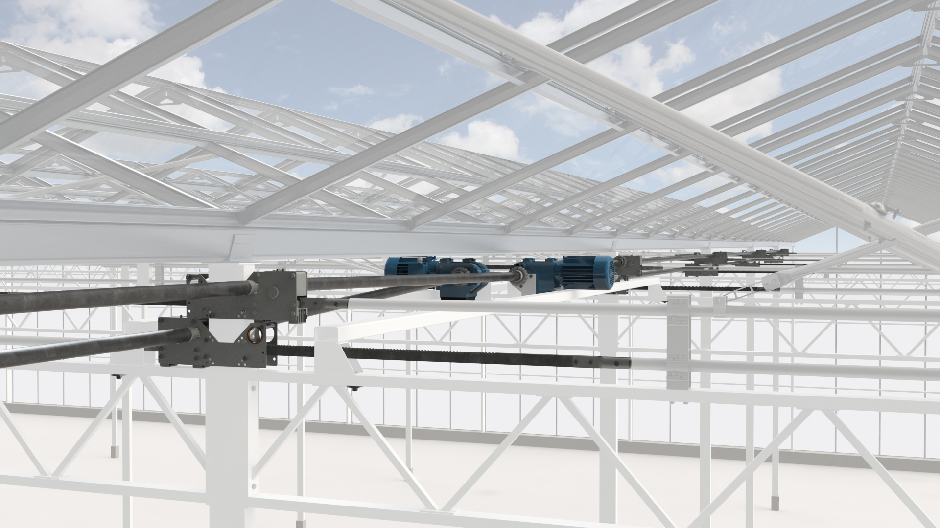 Contact opnemenVenlo kassen met doorlopende nokluchting in combinatie met spantrailluchting worden toegepast in gebieden waar een zeer grote ventilatiecapaciteit benodigd is. De doorlopende luchtramen zijn aaneengesloten in de gootrichting van de kas. Één THG tandheugel bedient een rij luchtramen in een afdeling. De tandheugels voor voor- of tegenluchting worden gekoppeld met aandrijfbuizen en aangedreven door een GW motorreductor.